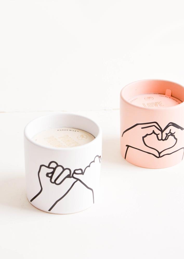 Express yourself with these 5.75 oz matte ceramic candles. Each candle comes with a gold foil stamped dust cover with a fun sentiment to share with the people you love.