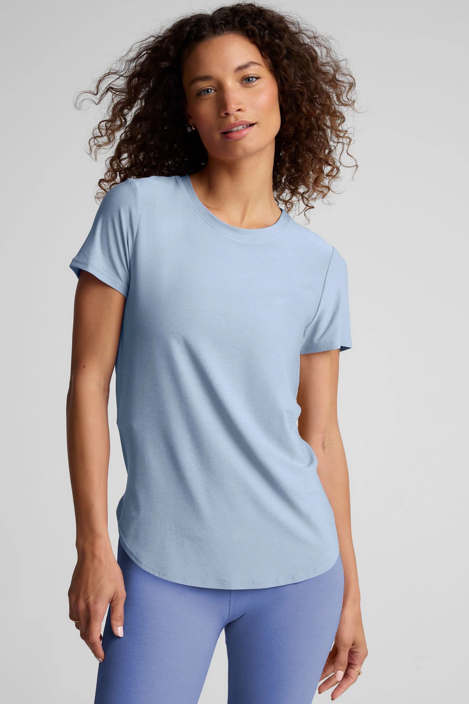A relaxed tee made from our incredibly soft and lightweight, Featherweight Spacedye fabric. Complete with a curved hem, short sleeves, and long length for more coverage. Wear it with your favorite leggings or jeans for everyday style.